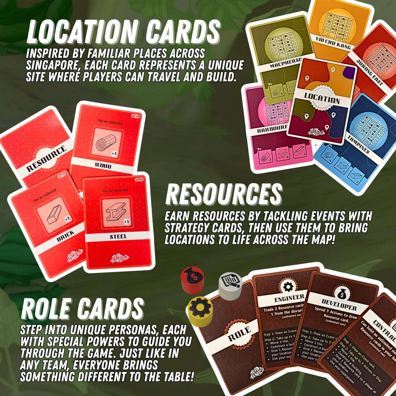 This game was created and produced by our team of learning designers from the Institute of Leadership & Organisation Development, Civil Service College in November 2025. We developed Team TenaCity to give teams an easy, engaging way to foster stronger relationships, build resilience, and learn problem-solving strategies (all inspired from positive psychology research) that improve both performance and well-being at work.
